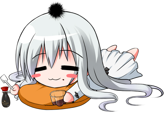 Để bình tĩnh Tsukkomi, tôi đã đặt một cái nệm dưới vú của mình trong khi hai bên cạnh là thìa và nước tương.