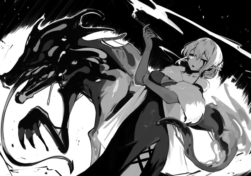 “Wah!” Ngạc nhiên quay người lại, người đàn ông nhìn thấy một quý cô khá giả đang đứng lơ lửng trên không trung. Cô ấy không buồn tấn công; với bầu không khí bơ phờ xung quanh mình, cô uể oải rút tẩu thuốc ra và bắt đầu hút một lần nữa.