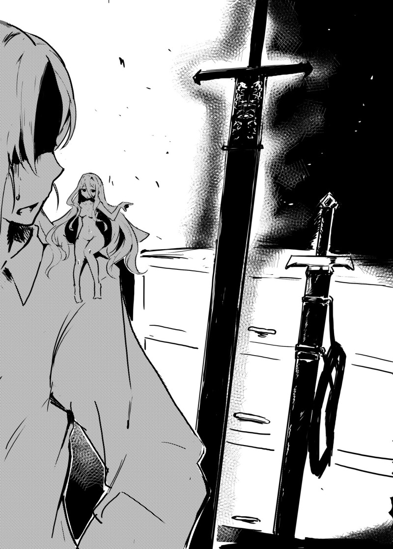 Thanh kiếm khoe khoang những khả năng giống như những thánh kiếm nổi tiếng rải rác trong thần thoại ở thế giới trước của tôi. Tôi không biết làm thế nào một thứ tuyệt vời như vậy lại có thể tỏa ra một luồng khí chết chóc như vậy. Điều này có ổn không? Chúng ta có thể tin tưởng nó? Tôi chắc chắn rằng việc sử dụng nó sẽ ăn mòn vào tâm trí tôi; Ý tôi là, chỉ cần nghe nó là bắt buộc phải đau đầu rồi.