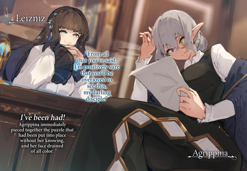 Ồ. Cô ấy không chỉ ăn mặc sang trọng mà còn chuẩn bị cả quyền trượng của mình. Chắc chắn không bình thường. Bức thư mở đầu cho vấn đề này đã biến mất—tôi không dám đọc nó nếu nó nằm lung tung—và tôi không có cách nào nhìn thấu ý định thực sự của một đạo sư-chính trị gia lỗi lạc như Phu nhân Leizniz, cũng như một kẻ đồi trụy như cô ấy.