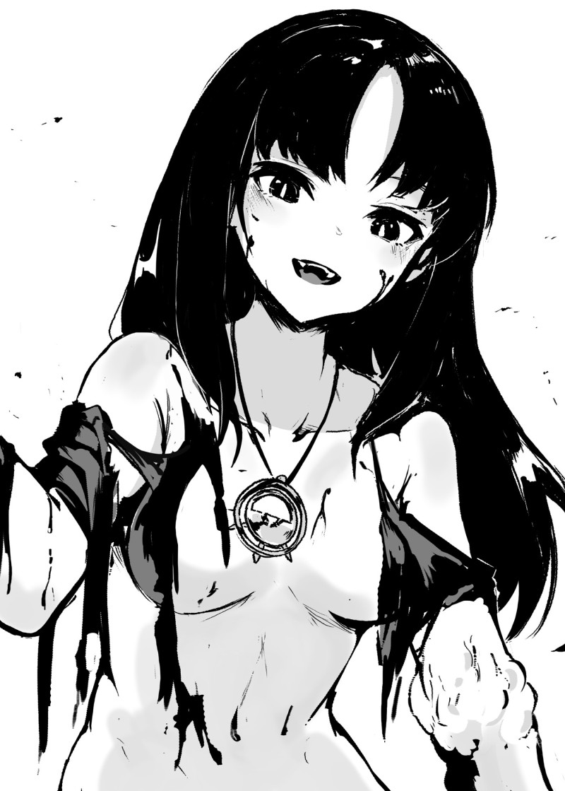 Tuy nhiên, đối với tất cả vẻ đẹp của cô ấy, đặc điểm nổi bật nhất của cô ấy vẫn là đôi môi không thay đổi—một màu đỏ tươi rực rỡ hơn bất kỳ loại son môi nào. Và ló ra từ khoảng trống giữa chúng là một cặp răng nanh dài trắng như ngọc trai.