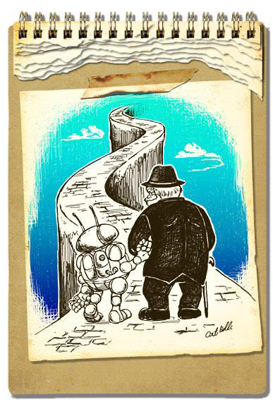 Vị giáo sư tiếp tục cuộc hành trình một lần nữa. Một cuộc hành trình với chú robot của mình.